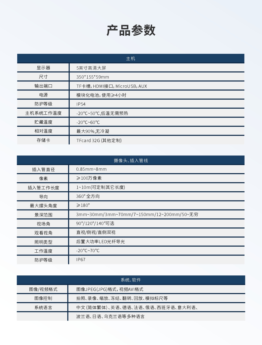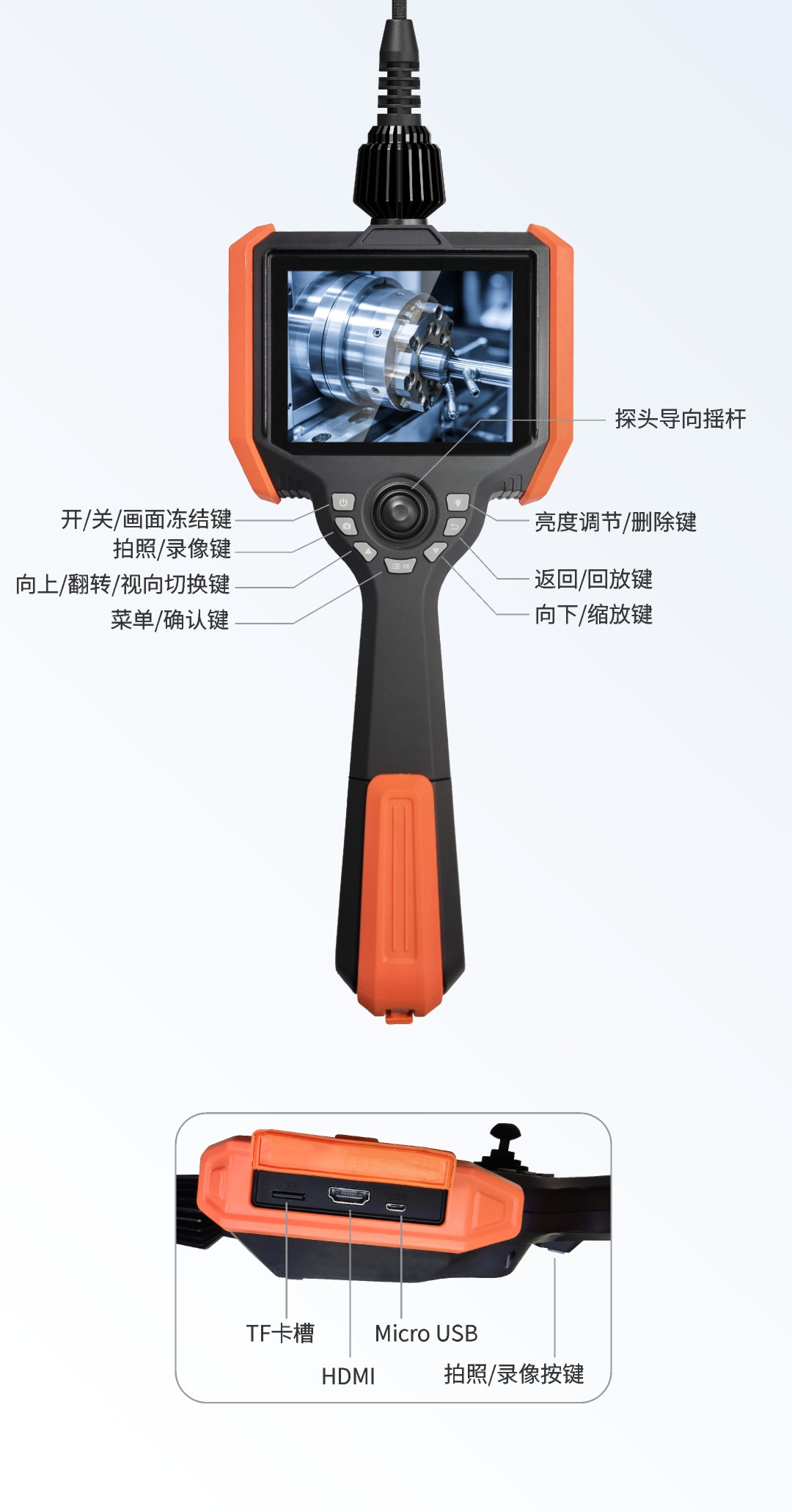 優勢特點:快速更換管線、百萬像素、360°旋轉探頭、光纖照明