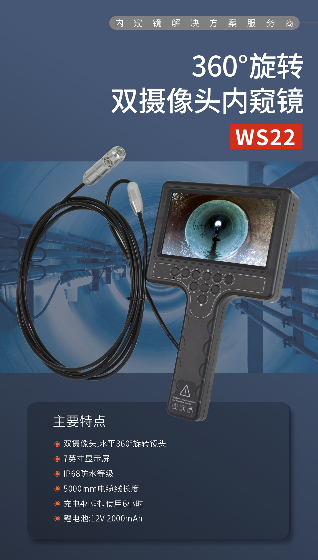 WS22系列360°旋轉雙攝像頭內窺鏡